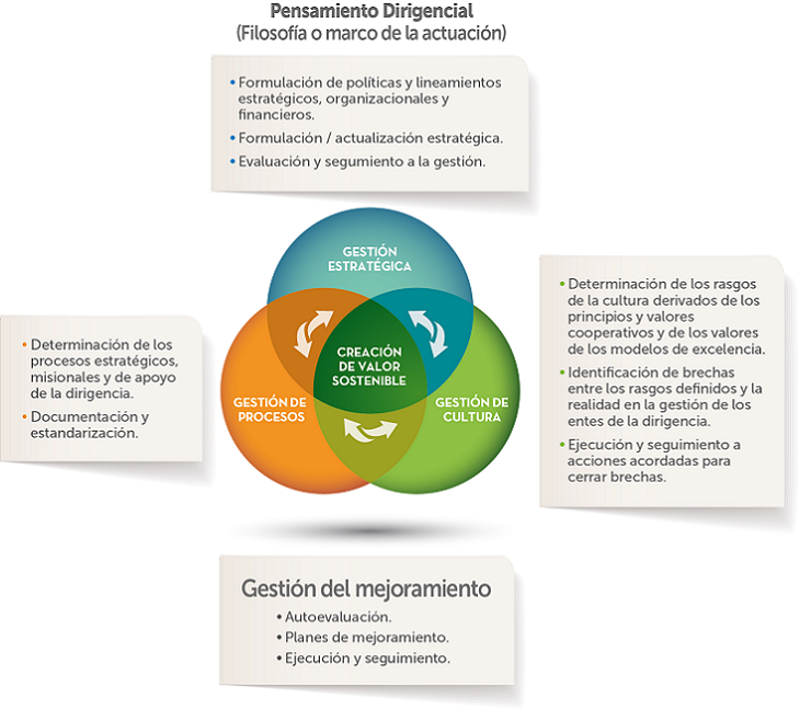 El modelo de gestión de la Dirigencia de Coomeva está integrado por los elementos que se describen en el siguiente esquema: